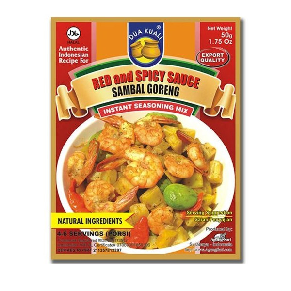 Bumbu Dua Kuali Sambal Goreng memiliki ijin Departemen Kesehatan dan sertifikat HALAL dari MUI Jatim.