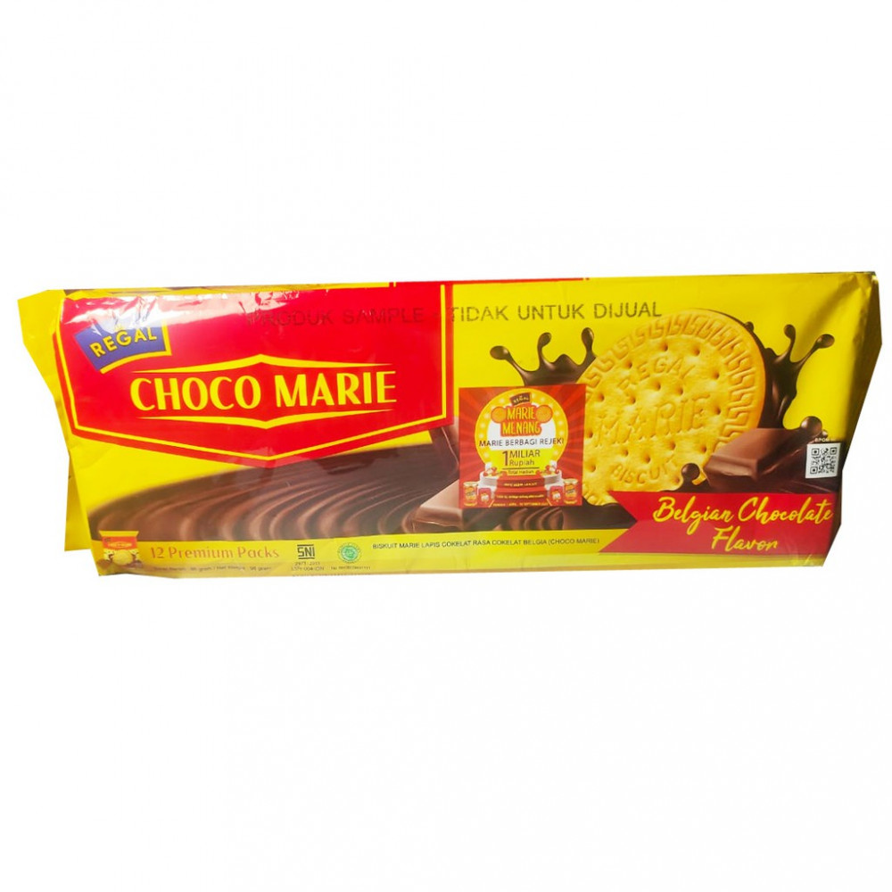 Regal Biskuit Marie Belgian chocolate flavour merupakan sebuah biskuit yang terbuat dari bahan-bahan alami seperti susu, mentega, telur, dan juga tepung yang memiliki kualitas tinggi serta diproses secara higienis sehingga aman untuk dikonsumsi. Biskuit Marie memiliki beberapa kandungan gizi dan juga nutrisi yang baik untuk menjaga kesehatan .