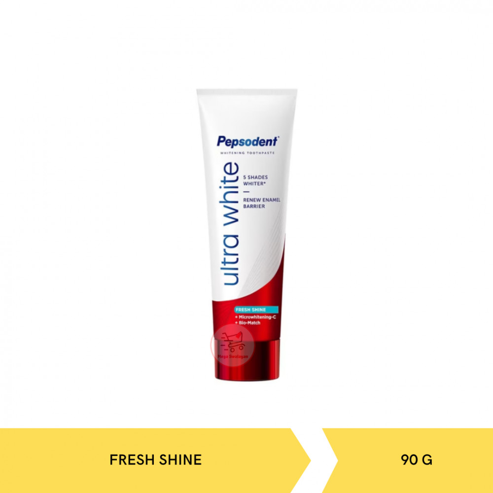 Pepsodent Ultra White Fresh Shine Toothpaste adalah pasta gigi pemutih dengan teknologi Microwhitening-C dan Blue HAP yang membantu mencerahkan gigi