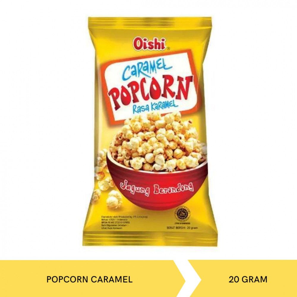 Oishi Popcorn Karamel merupakan camilan siap makan persembahan dari Oishi. Camilan popcorn persembahan Oishi ini terbuat dari jagung pilihan yang diolah bersama krim karamel yang lezat. Ideal dinikmati saat menonton film, mengobrol bersama sahabat, ataupun sebagai teman perjalanan.