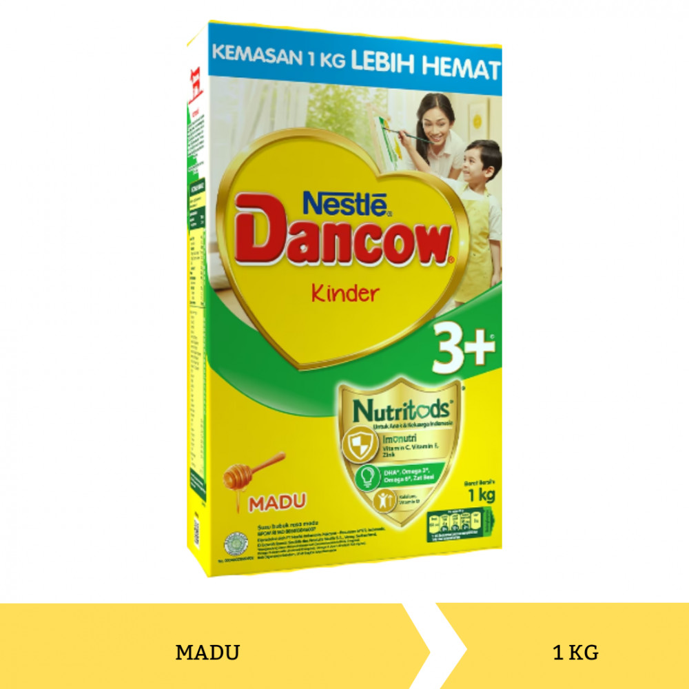 DANCOW 3+ kini dengan Imunutri, susu pertumbuhan yang diformulasikan untuk mendukung daya tahan tubuh anak Indonesia usia prasekolah 3-5 tahun agar ia BEBAS BEREKSPLORASI, TUMBUH PERCAYA DIRI. DANCOW 3+ dengan Imunutri mengandung tinggi Vitamin C, Vitamin E, tinggi Zink, DHA, Omega 3 & 6, sumber Zat Besi, tinggi Kalsium, dan tinggi Vitamin D.