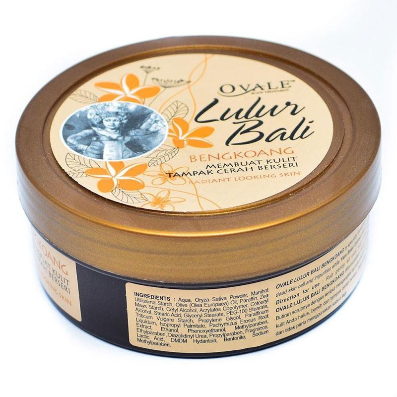Lulur Bali OVALE ini diformulasi untuk membantu menjadikan kulit tampak lebih cerah sekaligus merawatnya selalu sehat, halus, dan lembut. Dengan butiran natural scrub lembut yang bekerja mengangkat sel kulit mati dan kotoran, serta mengandung ekstrak bengkoang yang mencerahkan kulit.