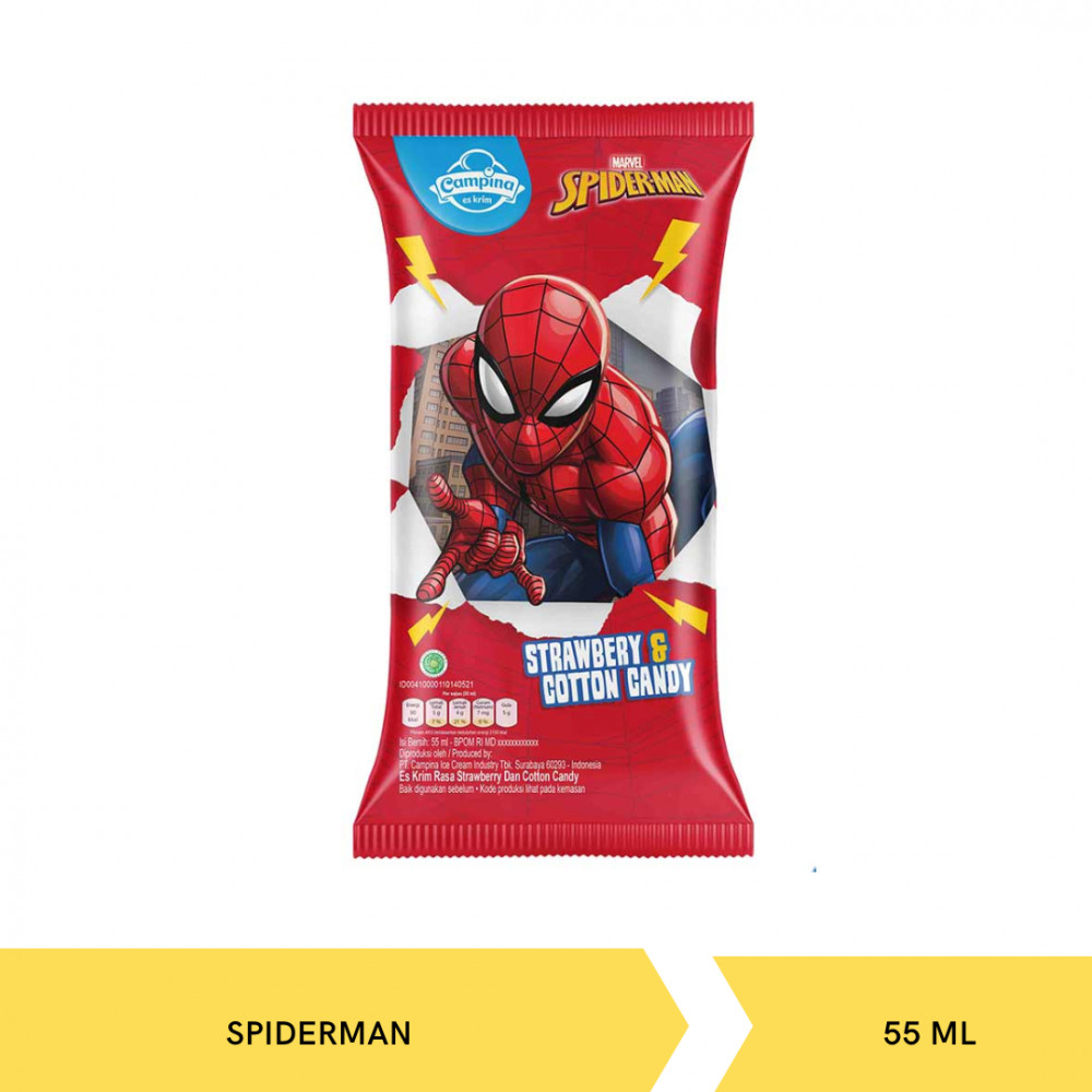 Campina ice cream spiderman strawberry dan cotton candy pack 55mL.