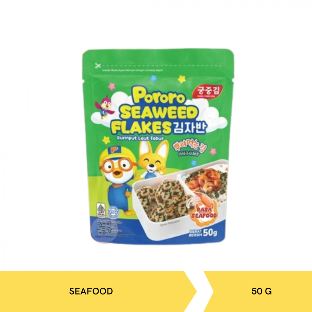 Pororo Seaweed Flakes adalah potongan rumput laut dengan bahan pilihan yang digunakan sebagai taburan (topping) atau tambahan rasa pada makanan yang cocok dijadikan teman ngemil setiap aktivitas, seperti menonton tv, belajar atau bersantai