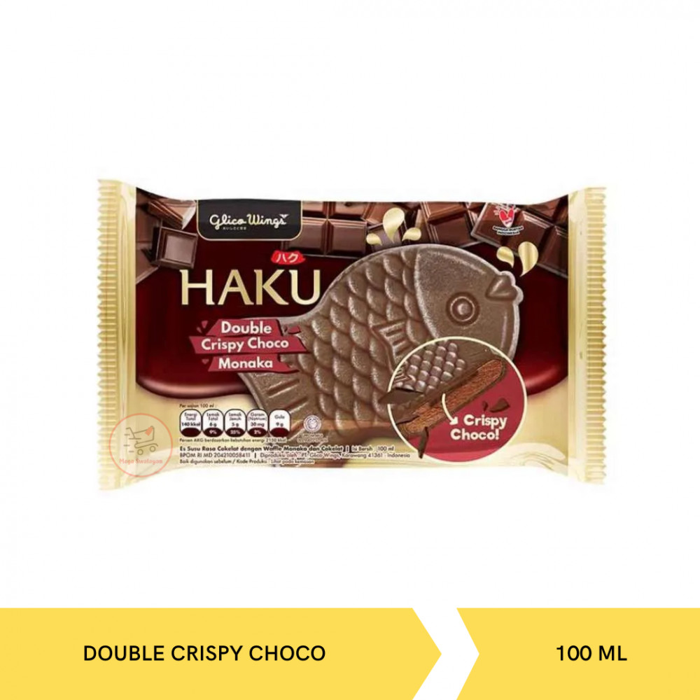 Kemewahan snack taiyaki khas Jepang hadir dalam Haku Crispy Monaka. Kelembutan es krim Jepang creamy rasa coklat dan lapisan coklat crispy dibalut waffle taiyaki lembut memberikan pengalaman dan inspirasi akan Jepang yang tak terlupakan. Rasakan keunikan taiyaki Jepang dengan menikmati kelezatan Haku Double Crispy Choco Monaka!