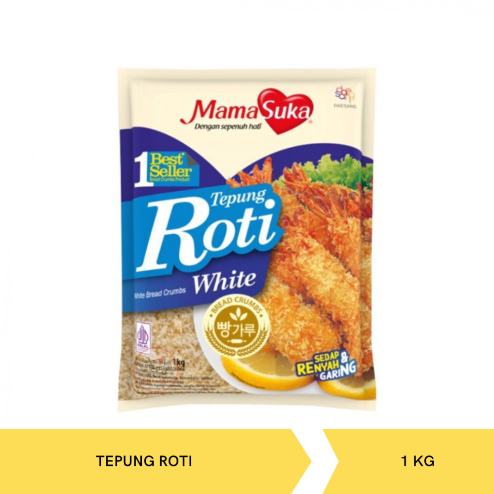 Tepung Roti White MamaSuka terbuat dari tepung roti tawar dengan bahan terigu berkualitas tinggi yang diolah sedemikan rupa sehingga menghasilkan serpihan remah bagus, garing dan harum khas roti tawar. Sangat cocok untuk mebalur/melumuri aneka gorengan, udang, daging ayam filet, ikan, dan lainnya untuk menghasilkan gorengan dengan sensasi rasa khas.