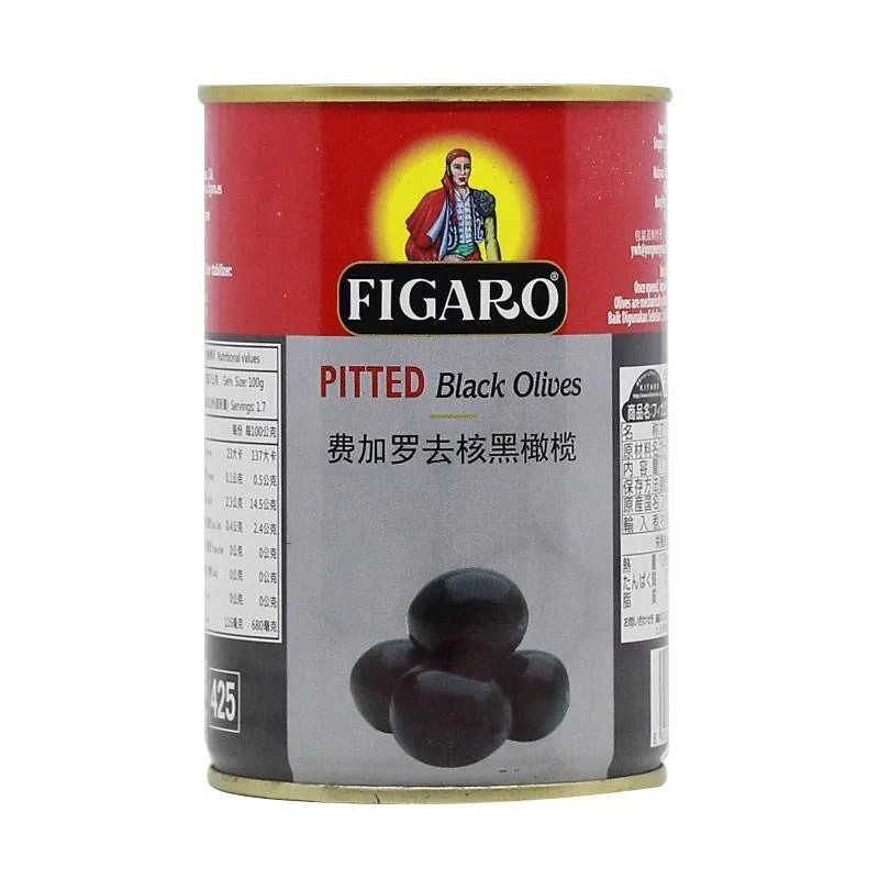 FIGARO Pitted Black Olive Cans [400 g] merupakan buah Zaitun hitam dalam kemasan kaleng, Pitted black olives lebih asin dan gembuk daripada fresh olives yang lebih terasa seperti buah (fruity). Pitted black olives direndam dalam brine (air garam) untuk menghilangkan rasa pahit alami olive dan menambah rasa asin. Black olives cocok untuk dipadukan dengan salad, bubur, spaghetti, potato salad, chili, dsb.