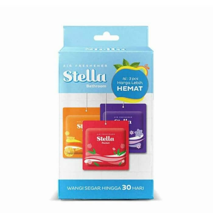 Pengharum ruangan adalah sebuah hal yang penting untuk kita punya di urmah kita, salah satunya untuk di kamar mandi. Kamar mandi yang memiliki aroma yang sedap akan membuat nyaman. Stella Bathroom Pocket adalah salah satu pengharum ruangan khusus di kamar mandi yang mudah di taruh di sisi-sisi kamar mandi anda. Terdapat 5 jenis Stella Bathroom Pocket yaitu Purple Dream, Orange Twist, Fresh green, Red, dan Blue. Stella Bathroom Pocket memiliki aroma yang segar dan tahan sampai 30 hari.
