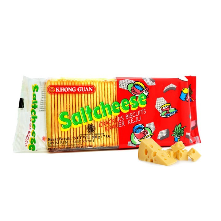 Khong Guan Saltcheese merupakan krekers dengan tekstur yang tipis yang membuatnya begitu renyah. Aroma dan rasa kejunya begitu mengggoda saat pertama Anda membuka kemasannya dan begitu terasa saat Anda mengunyahnya. Rasa biskuit kejunya juga unik karena ada rasa asin yang khas yang membuat Anda selalu ingin merasakannya. Dikemas elegan dalam plastik dan gambar menarik membuat rasa kejunya selalu terjaga. Nikmati rasa lain keju asli dalam Khong Guan Saltcheese Crackers.