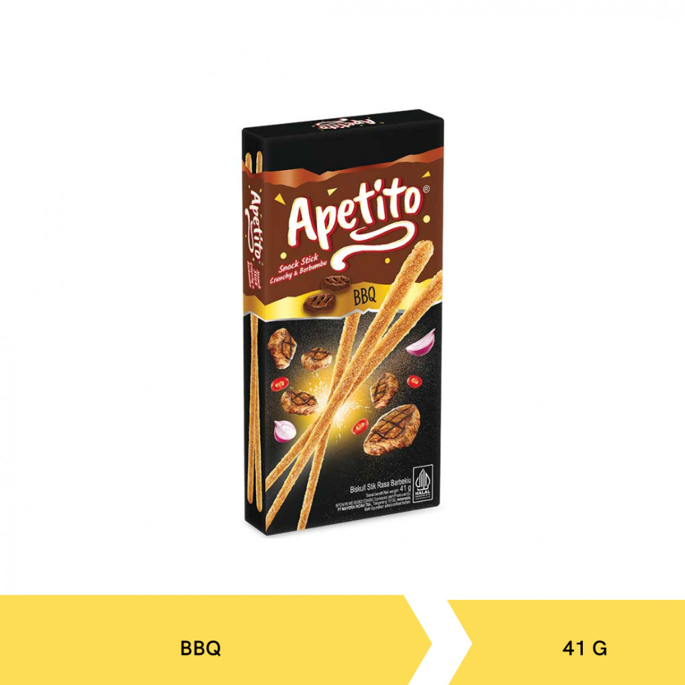Apetito snack panjang crunchy & berbumbu. Biskuit stik rasa barbekiu.