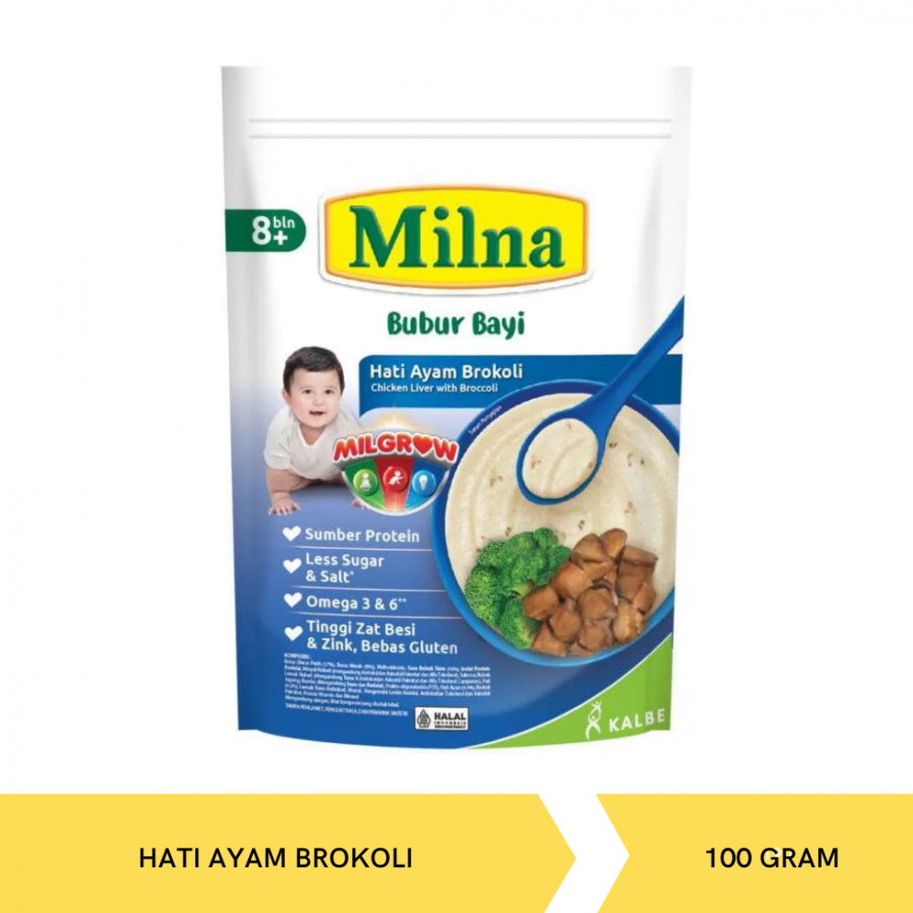 Milna Tumis Hati Ayam Brokoli Bubur Bayi [120 g] adalah bubur bayi untuk bayi berumur lebih dari 9 bulan. Bubur bayi ini mengandung karbohidrat, vitamin, kalsium, mineral, protein, omega 3, 5 & 6, dan 9 asam amino esensial agar tumbuh kembang bayi menjadi lebih baik.