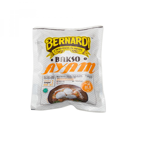 Bernardi Bakso Ayam Kecil 50 biji adalah produk dari daging ayam pilihan yang diolah dengan menggunakan mesin semi otomatis sehingga dapat menghasilkan cita rasa dan kualitas yang tinggi.
