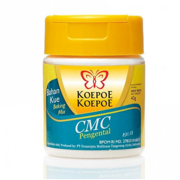 CMC Koepoe Koepoe digunakan sebagai bahan tambahan pangan untuk pengental pada makanan dan minuman seperti jelly, fla, sirup, smoothies. Dibuat dari bahan pilihan yang bermutu tinggi untuk kesempurnaan kue anda.
