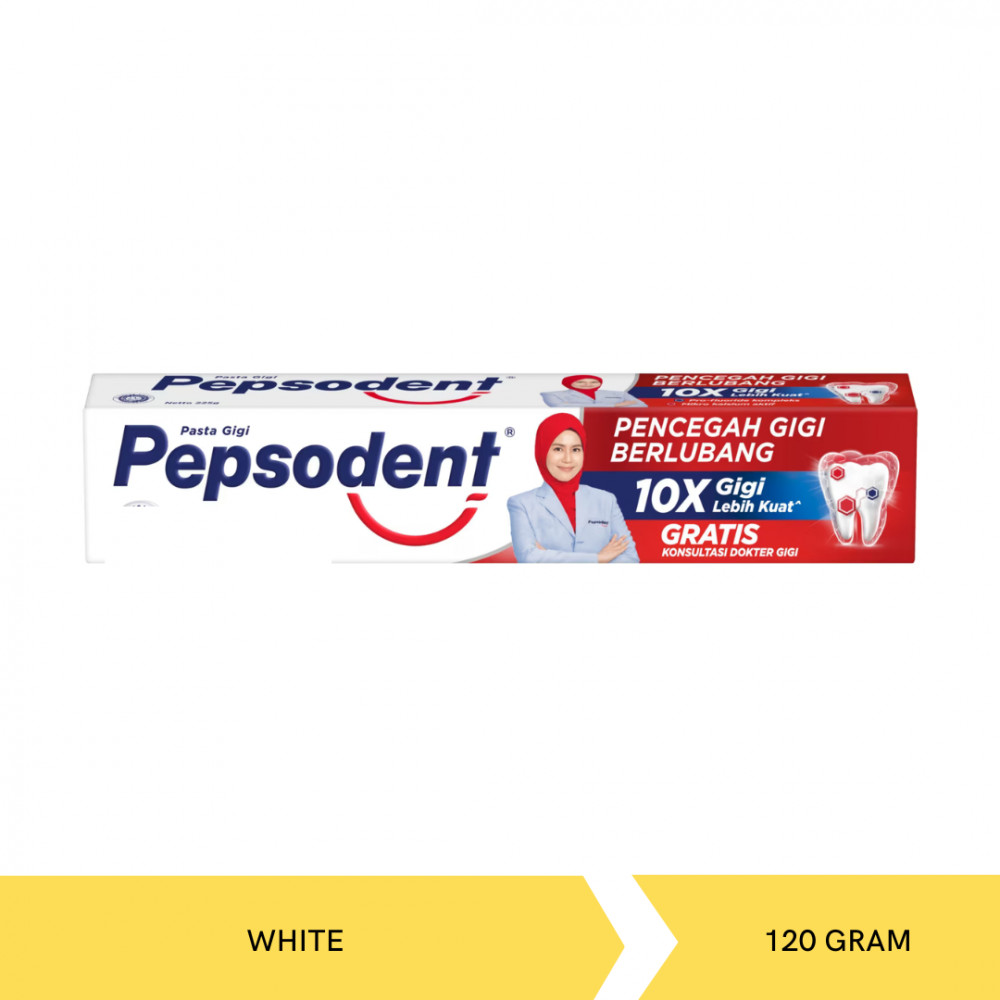 Pepsodent Pasta Gigi White merupakan produk varian yang diinovasikan oleh Pepsodent Indonesia. Pepsodent Pasta Gigi White akan memberikan perlindungan penuh untuk gigi dan mulut selama 12 jam. Pasta gigi ini akan membantu mencegah gigi berlubang, memperbaiki lubang kecil tak kasat mata serta mempertahankan kekuatan gigi lebih lama.