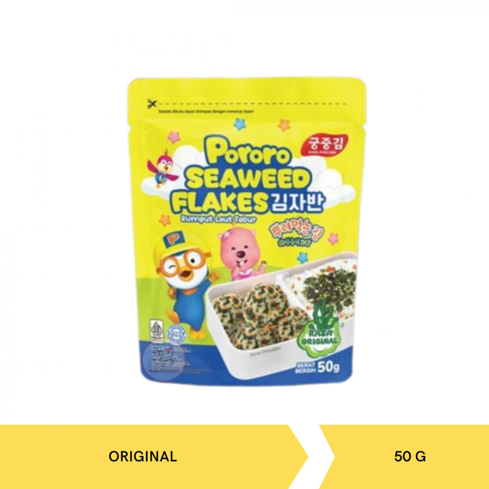 Pororo Seaweed Flakes adalah potongan rumput laut dengan bahan pilihan yang digunakan sebagai taburan (topping) atau tambahan rasa pada makanan yang cocok dijadikan teman ngemil setiap aktivitas, seperti menonton tv, belajar atau bersantai.