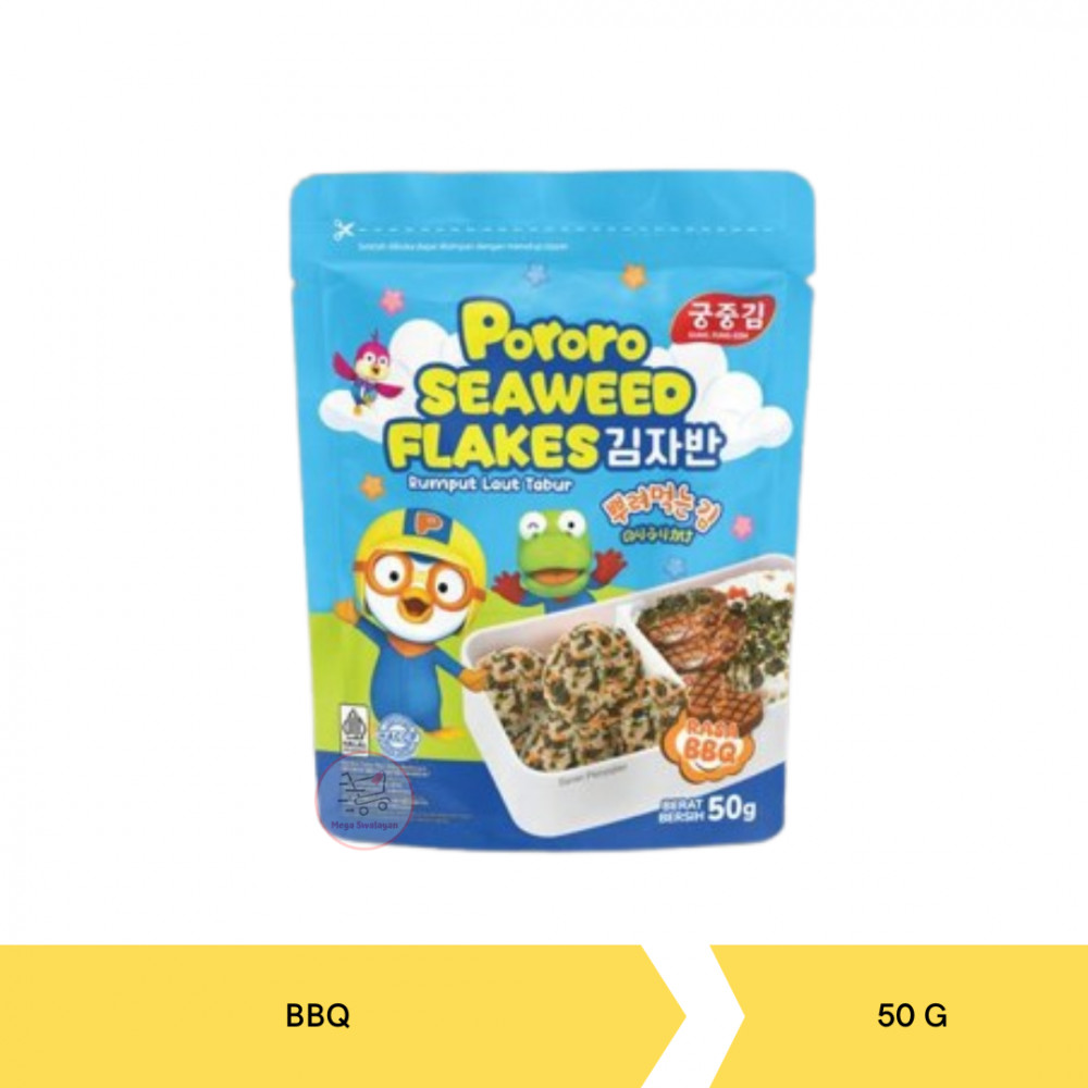 Pororo Seaweed Flakes adalah potongan rumput laut dengan bahan pilihan yang digunakan sebagai taburan (topping) atau tambahan rasa pada makanan yang cocok dijadikan teman ngemil setiap aktivitas, seperti menonton tv, belajar atau bersantai