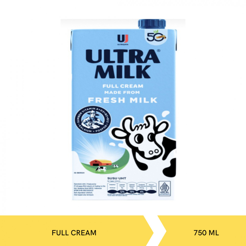 Susu UHT Ultra Milk Full Cream merupakan susu segar alami berkualitas tinggi dengan berbagai kebaikan seluruh kandungan nutrisi didalamnya, dari mulai protein, karbohidrat, vitamin, serta berbagai macam mineral seperti kalsium, magnesium, fosfor. Menjadikan Ultra Milk Full Cream susu bernutrisi seimbang yang baik diminum sehari-hari bagi seluruh keluarga Indonesia. Selain itu, ini juga mengadung nutrisi yang baik mendukung pertumbuhan anak-anak maupun dewasa. Selain itu, biasa dijadikan bahan baku untuk memasak serta membuat kue. Produk ini juga direkomendasikan untuk diminum anak-anak diatas satu tahun.