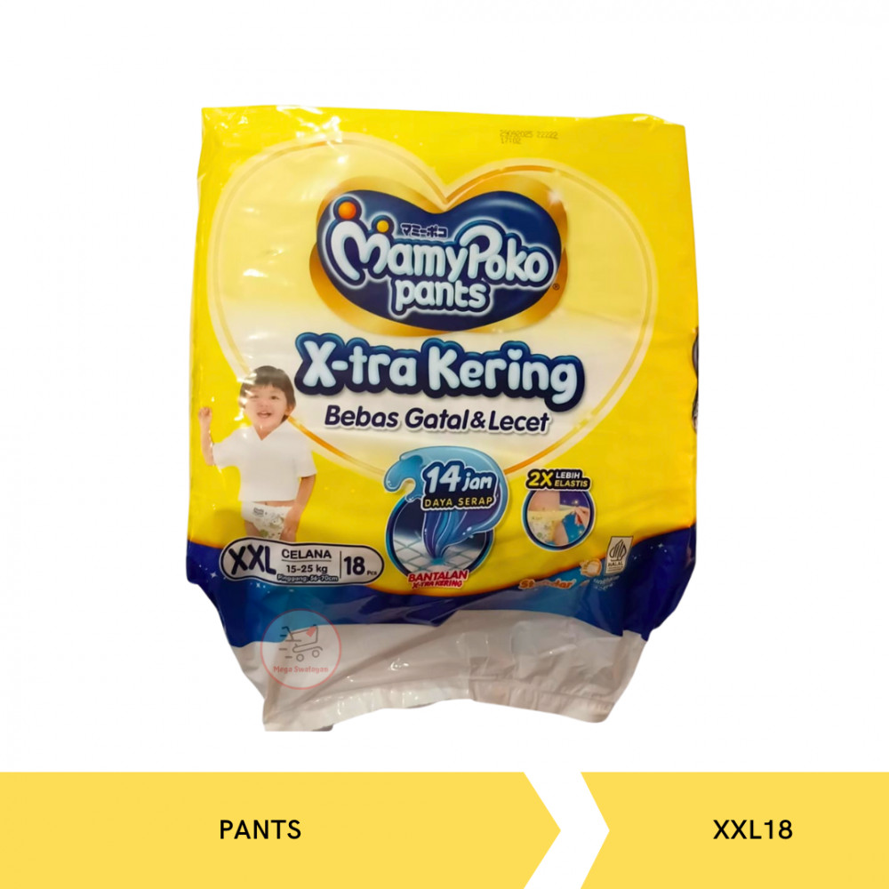 MamyPoko Standar Baby Pants [Size XXL/ 18 Sheets] merupakan popok celana untuk bayi dengan karet elastis sehingga menjadikannya mudah digunakan dan dilengkapi dengan penahan ganda yang dapat mencegah bocor samping serta memiliki Pori-pori untuk sirkulasi udara, & daya serap tinggi untuk pemakaian lebih lama. Popok ini ideal digunakan dan dapat menjadikan Sikecil lebih nyaman pada saat melakukan aktivitas sehari - hari.