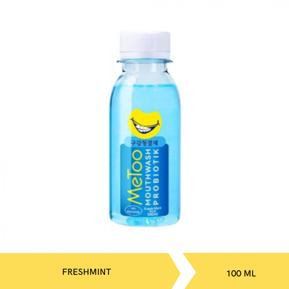 MeToo Obat Kumur Probiotik adalah obat kumur dengan esktrak tumbuhan dan rasa seperti jus. Larutan obat kumur ini tidak pedas di mulut dan lembut, serta rasanya yang enak menjadikan pengalaman berkumur Anda menyenangkan. Dengan kandungan Probiotik yang bisa merawat bagian oral secara efektif. Aglutination nya bisa menghapus bakteri berbahaya dengan menargetkan bakteri patogen, bisa membasmi bakteri anaerob bau, dan plak gig