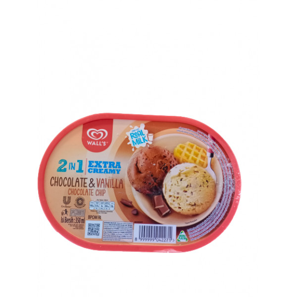 Es krim 2 in 1 rasa coklat dan vanilla serta chocolate chips