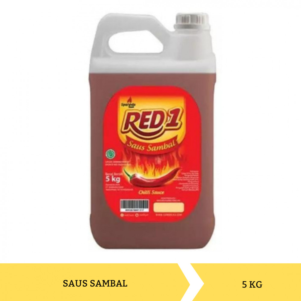 Sambal Red1 Jerigen 5 kg. Menggunakan cabai asli pilihan dan diracik bersama bawang putih sehingga memberikan aroma cabai yang menggugah selara. Nikmati Sambal Red1 yang memberikan rasa pedas asli dan gurih pada setiap masakan Anda. Apapun makanan Anda Sambal Red1 selalu menambah kenikmatan tersendiri.