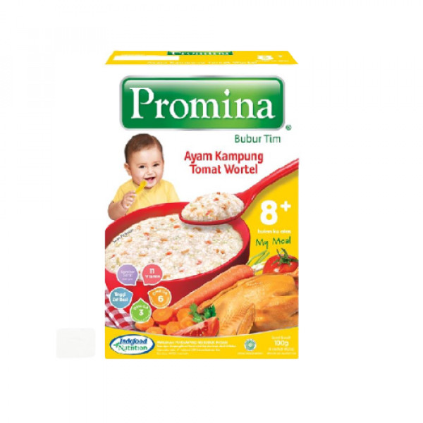 Promina Nasi Tim Ayam Kampung Tomat Wortel Makanan Bayi [100 g] merupakan makanan pendamping ASI dari Promina Nasi Tim Ayam Kampung Tomat Wortel. Berupa nasi tim siap masak bernutrisi yang diformulasikan untuk mengenalkan bayi pada banyak variasi makanan. Diperkaya omega 3 dan omega 6 (membantu perkembangan sel-sel otak bayi) Diperkaya prebiotik FOS (membantu fungsi saluran cerna dan melindungi bayi dari penyakit) Diproduksi secara higienis tanpa zat pewarna dan perasa tambahan.