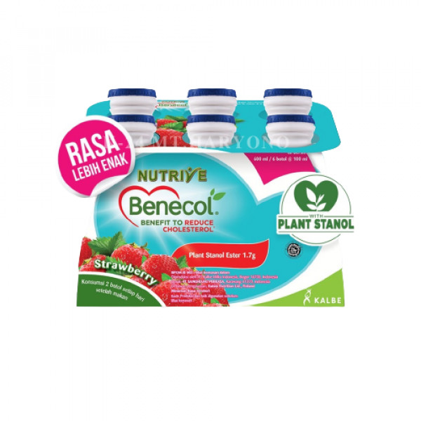 Atasi kolesterol tinggi dengan Nutrive Benecol Smoothies merupakan Minuman smoothie (susu dengan sari buah) yang mengandung Plant Stanol Ester (PSE) dan Teruji klinis dapat menurunkan kadar kolesterol total 7-10% setelah konsumsi 2botol/hari rutin dalam 2-3 minggu serta menghindari risiko penyakit jantung koroner. Cocok untuk orang yang memiliki kadar kolesterol tinggi maupun normal tetapi ingin melakukan pencegahan.