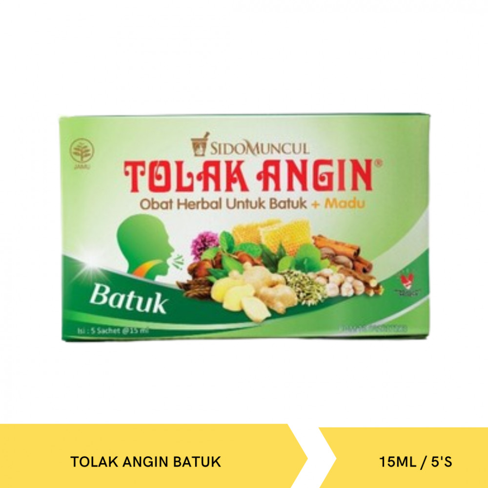 Tolak Angin Batuk hadir dalam bentuk sachet 15 ml dikemas dalam dos isi 5 sachet.