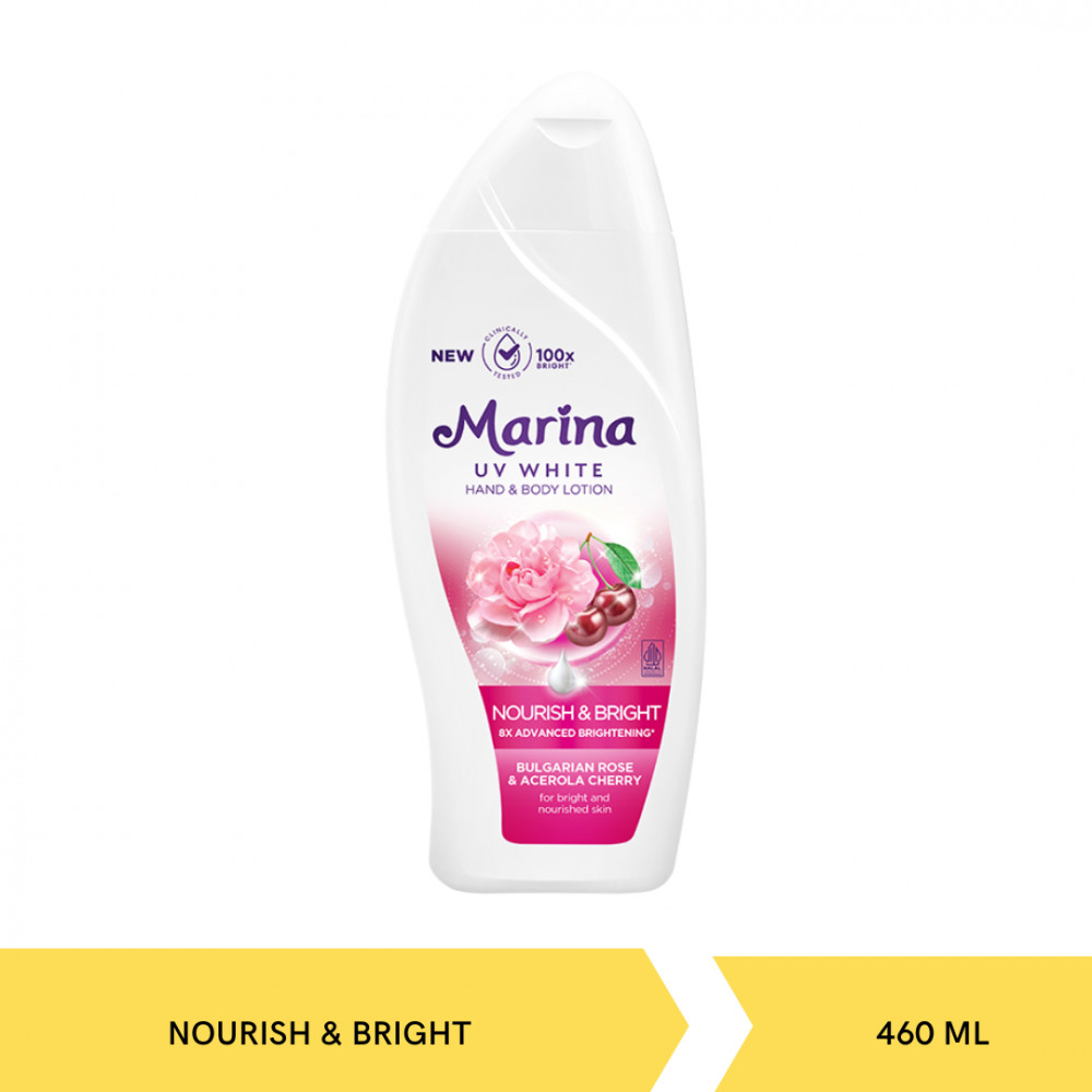 Hand & body lotion dengan 8x Advanced Brightening Formula dari Biowhitening Complex paduan Acerola Cherry, Bulgarian Rose, Niacinamide (Vitamin B3), Vitamin C & dan Vitamin E. Teruji klinis 100x mencerahkan. Acerola Cherry & Bulgarian Rose menutrisi kulit agar cerah berseri Niacinamide & Vitamin E untuk menutrisi dan melembutkan kulit. Triple UV Protection yang melindungi kulit dari UVA & UVB.